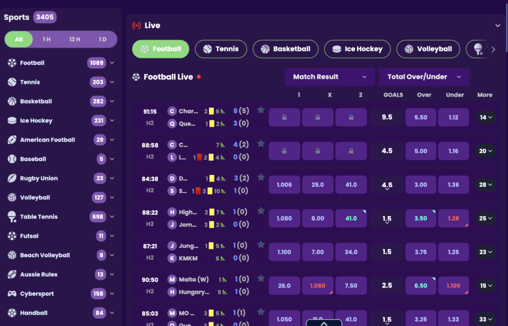 The Live Sports section also offers the option to again bet on all these major sports but in-play, so you can get real time bets on.